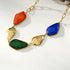 Collier maille avec des pierres de couleur doré, rouge, verte et bleue