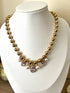 Collier avec une chaîne grosses perles, avec des grosses pampilles en perle et cristal de verre de forme ovale