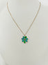 Joli collier composé d'une fine chaîne maille dorée et d'un pendentif en forme de fleur pétale émaillée, colorée et d'un brillant vert au centre