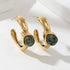 Jolie paire de boucles créole en acier inoxydable doré et avec une pierre verte