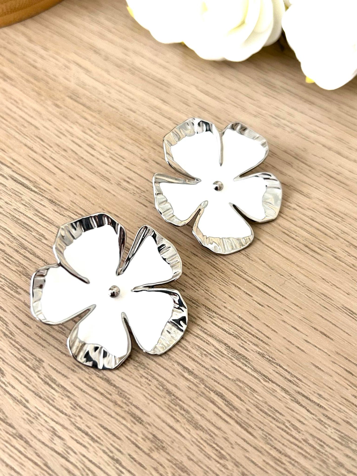 Superb pair of flower buckles in silver steel and enamel