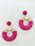 Superb imitation wood earrings surrounded by raffia