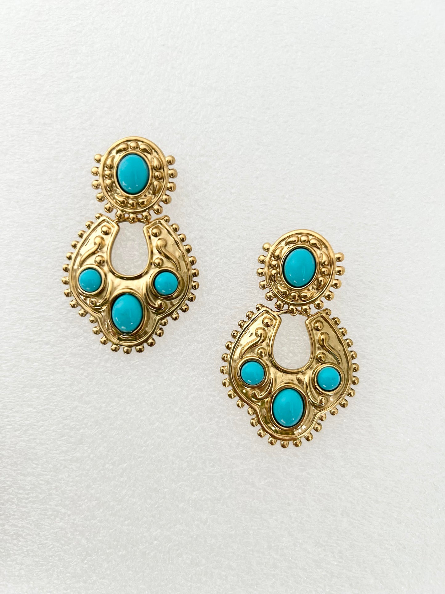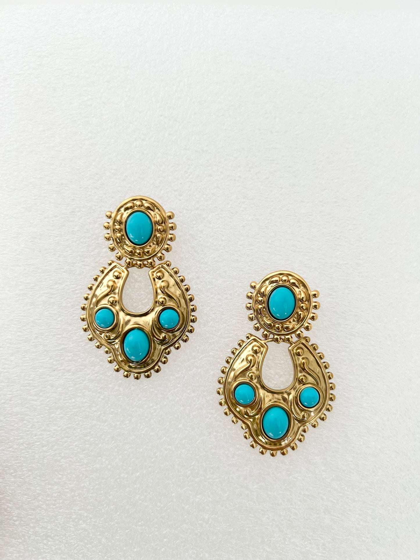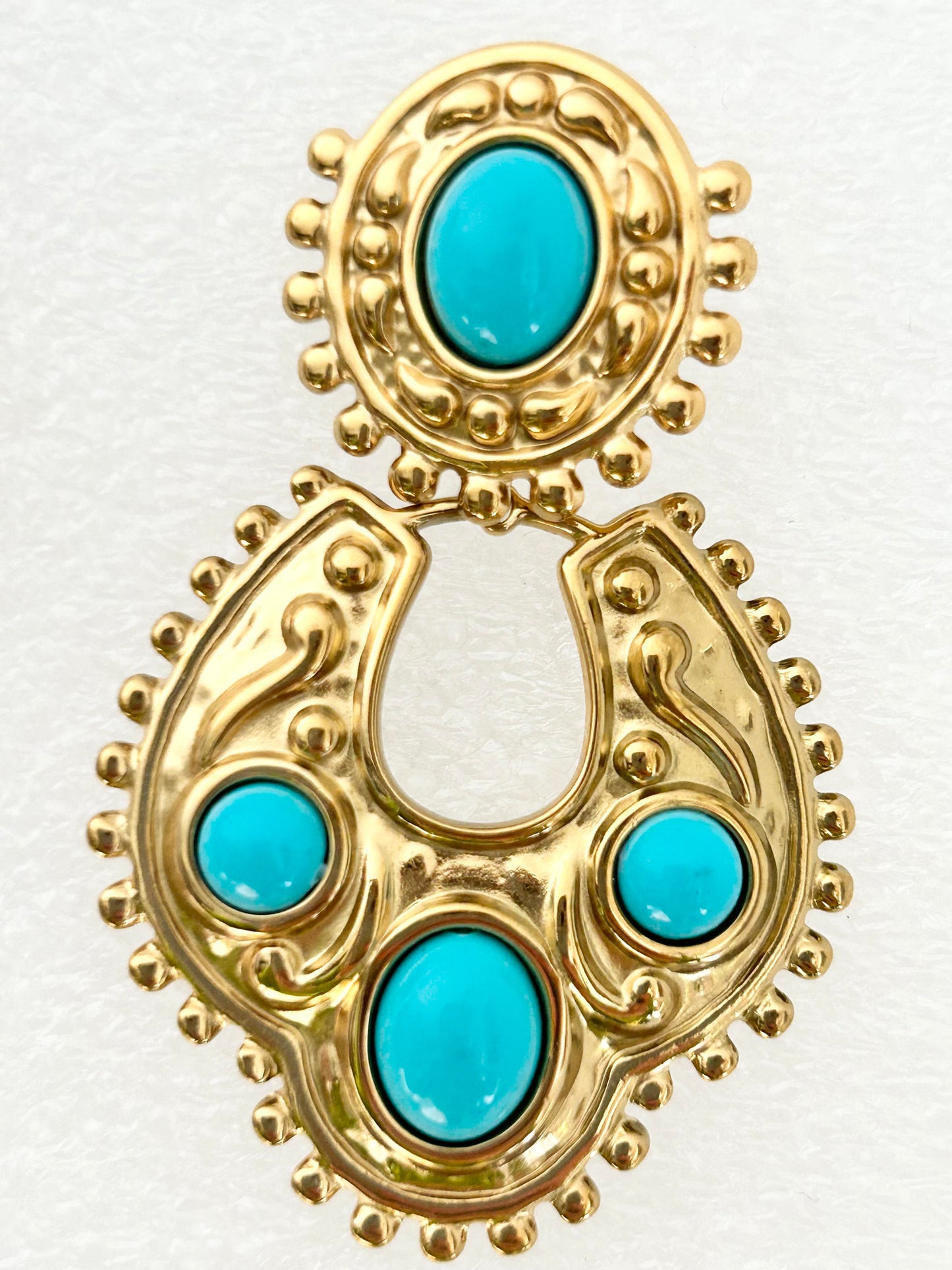 Sublime buckle in golden stainless steel, composed of turquoise stone. They are light and very comfortable to wear