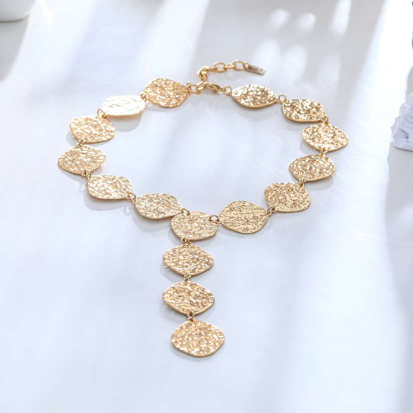 Plunging necklace with square shaped pieces in hammered steel, very elegant and trendy