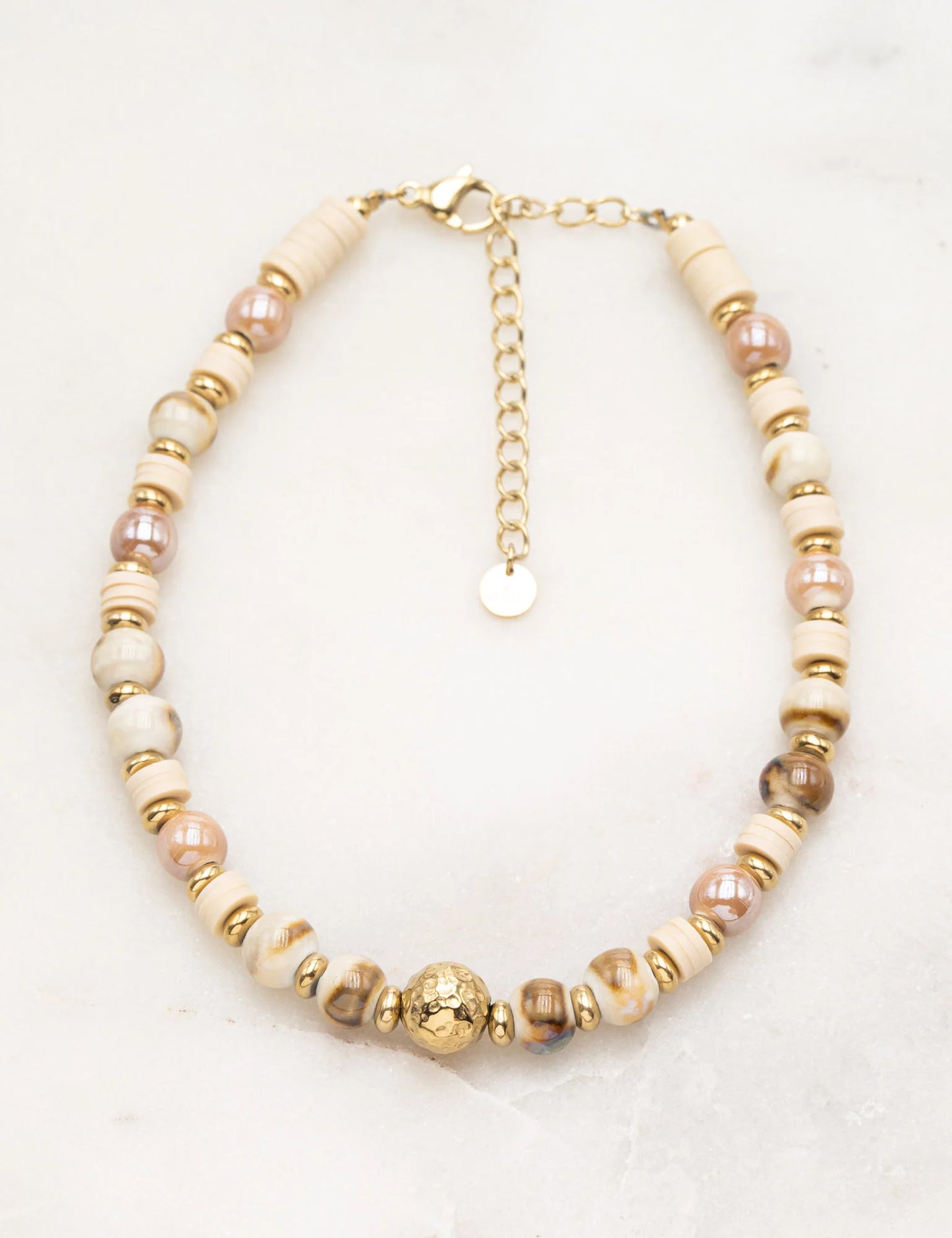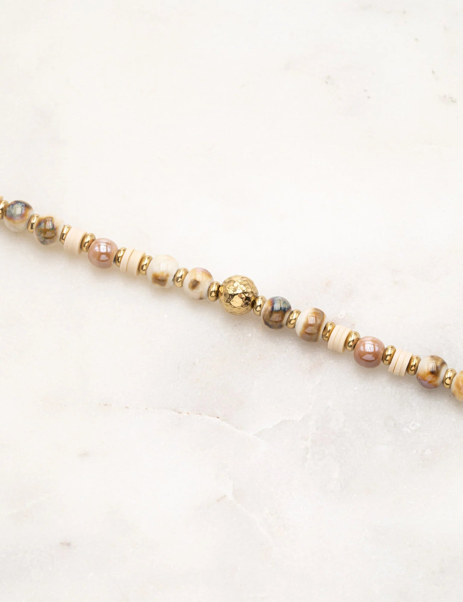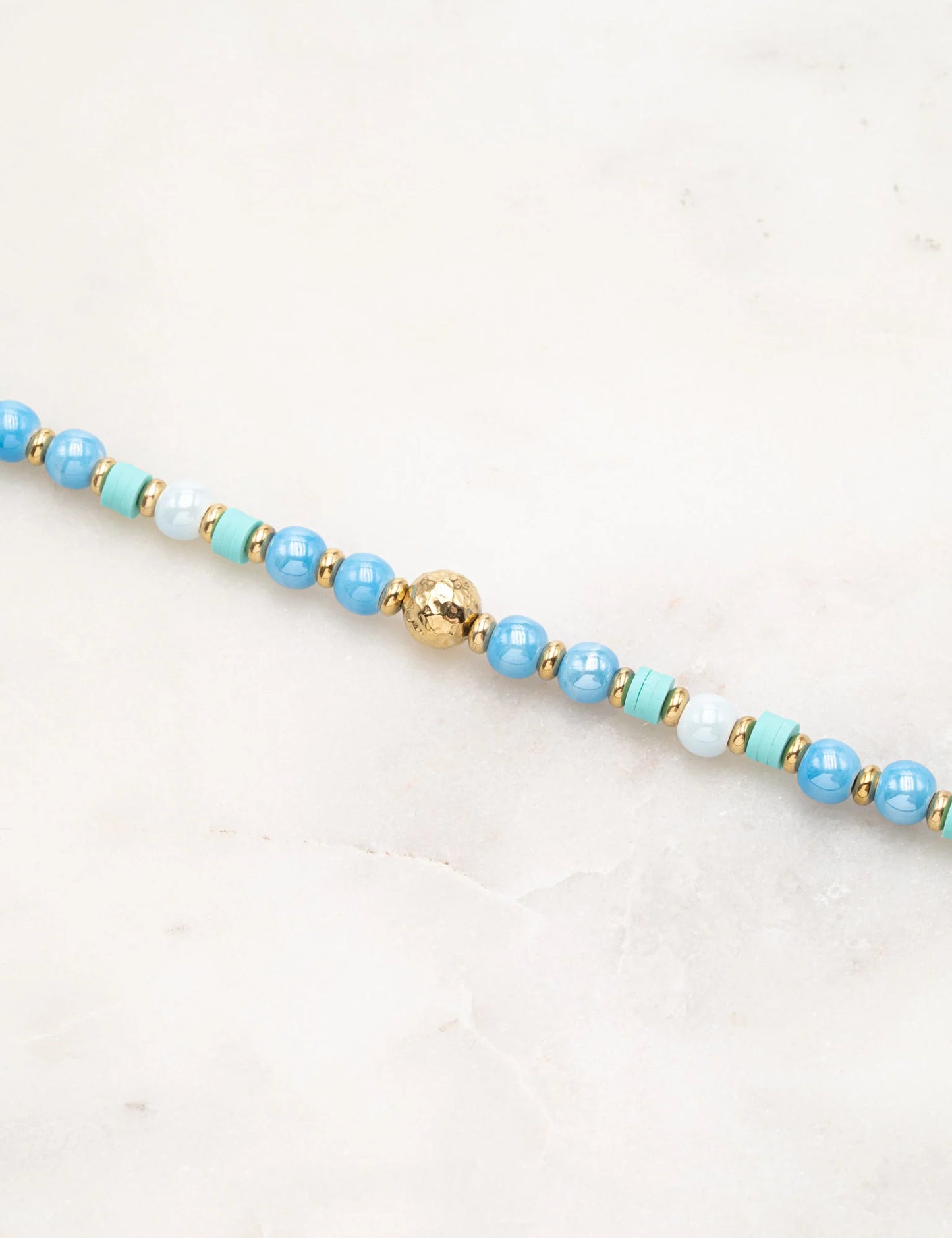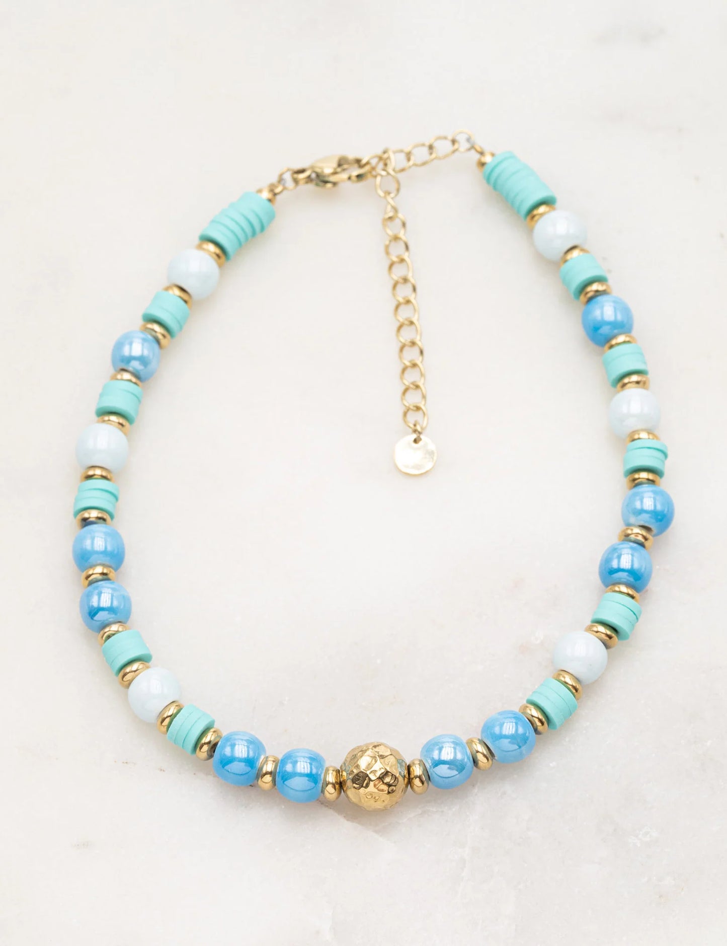 Chaîne cheville réglable composée de perles en céramique émaillée colorée et perle Heishi avec fermoir mousqueton et chaînette de réglage