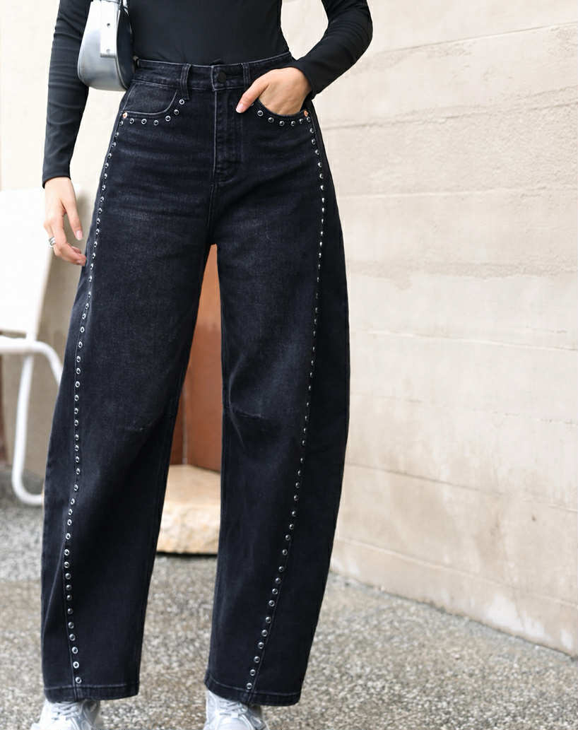 Jean forme ballon (forme arrondie) très tendance composé de petites perles noires